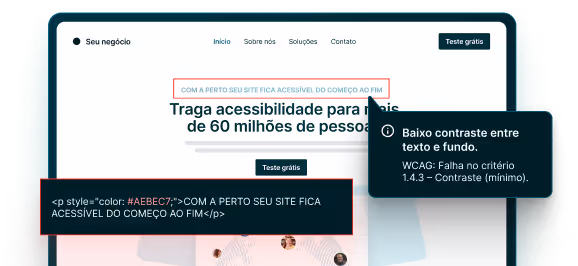 Da Lei Brasileira de Inclusão (LBI) aos padrões WCAG, diagnostique, monitore e resolva as barreiras digitais da sua marca com a única solução que une Inteligência Artificial e autoridade para evitar multas e otimizar a experiência.